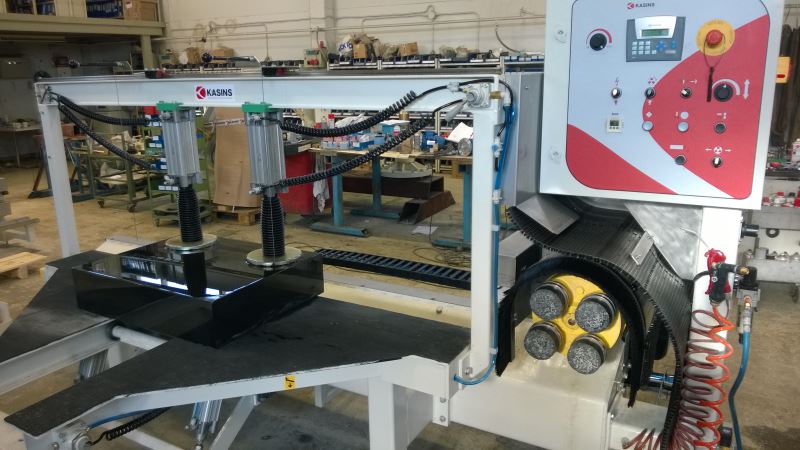 Kiven kääntöä varten on pöydän keskellä kiskoilla syvyyssuunnassa liikkuva ylös nouseva pyöritettävä talla.