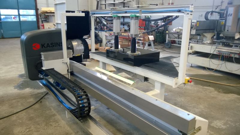 Kiven asemointia varten nousee pöydän alta vaste paineilmalla. Kivi lukitaan yläpuolisilla paineilmasylintereillä.