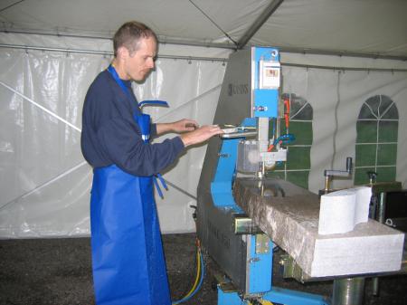 It is extremly effective machine for profiling tombstones, table tops, ect.. Sawing can be done by using the template as a model or alternatively by free hand. The saw is easy to control and it has very accurate sawing results. Robust and reliable construction guarantees precise and sensitive movements. The workpiece is easy to set on the worktable, which is equipped with stone/template holders. For processing larger workpieces or wide openings, the standard worktable can easily be replaced by the E –shape or C –shape worktable.